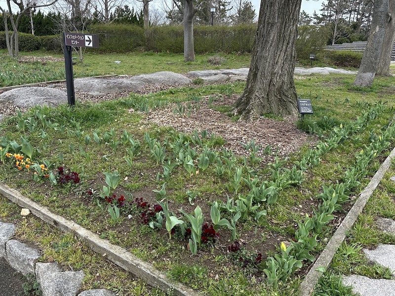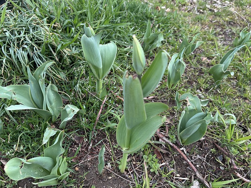 鐘木地区では、去年行った、チューリップの球根植えのチューリップがグングンと芽を伸ばしています。中には花が開きそうなものも・・・