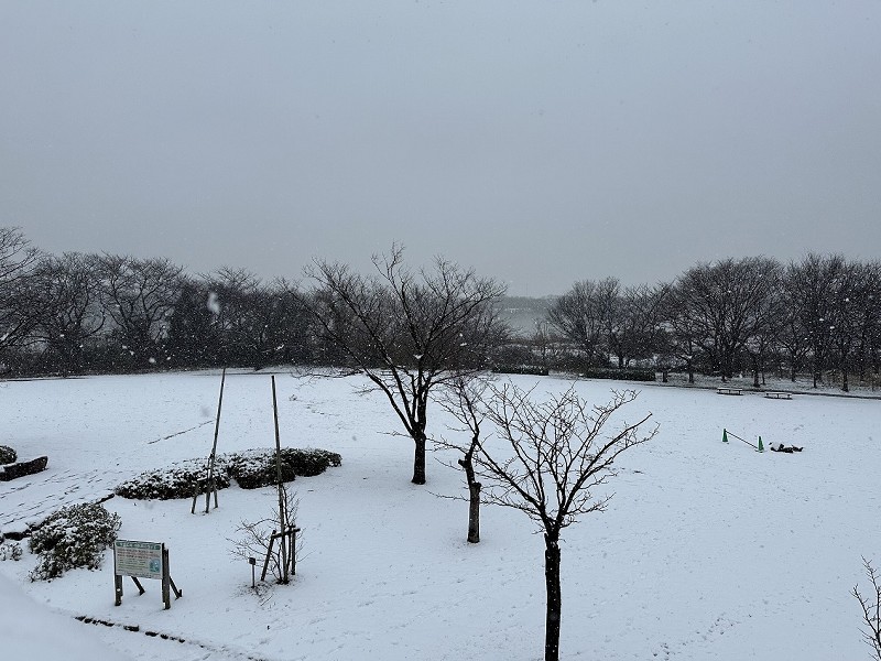 今日は朝から雪が降りうっすらとですが積雪しており水辺の広場では、ワンちゃんがはしゃぎまわっていました。