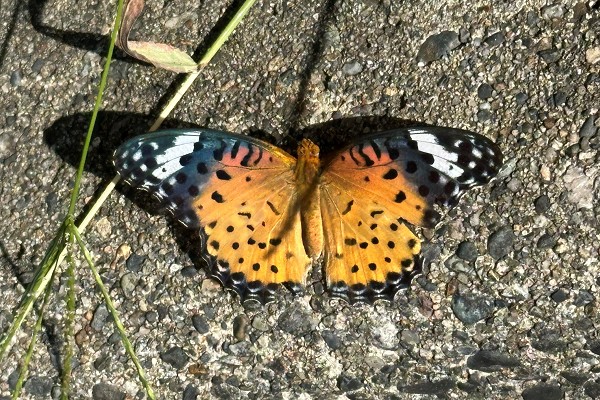 9月中はカマキリまつりを開催していますので、カマキリの写真を撮って鐘木インフォメーションセンターお越しください写真のはハラビロカマキリとツマグロヒョウモンになります。