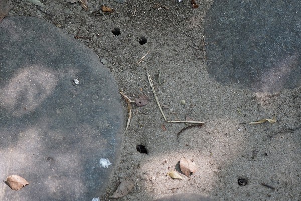 写真3はせみの幼虫が出てきた穴。穴だらけ