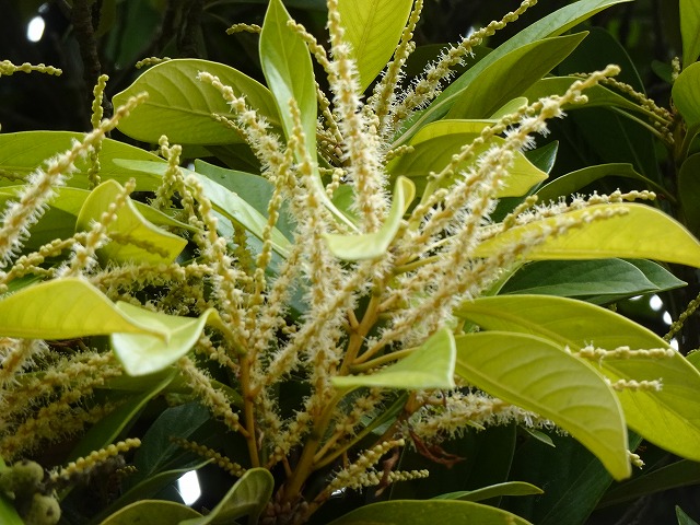 ブラシのようなマテバシイの花が咲いてる