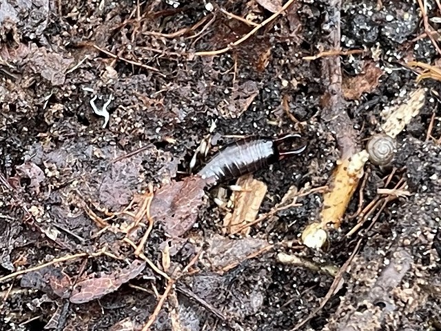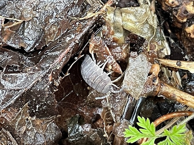 園内、落ち葉をめくってみるとダンゴムシやハサミムシが地中から出てきていました!