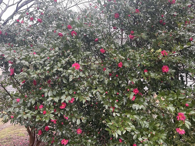 現在、女池地区インフォメーションセンターの裏ではサザンカが綺麗に咲いています。