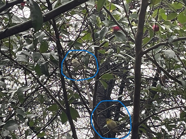 近づいてサザンカの中をのぞいてみるとメジロがご飯探し?元気に活動していましたよ。