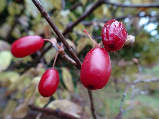 サンシュユの実は展望台付近で。