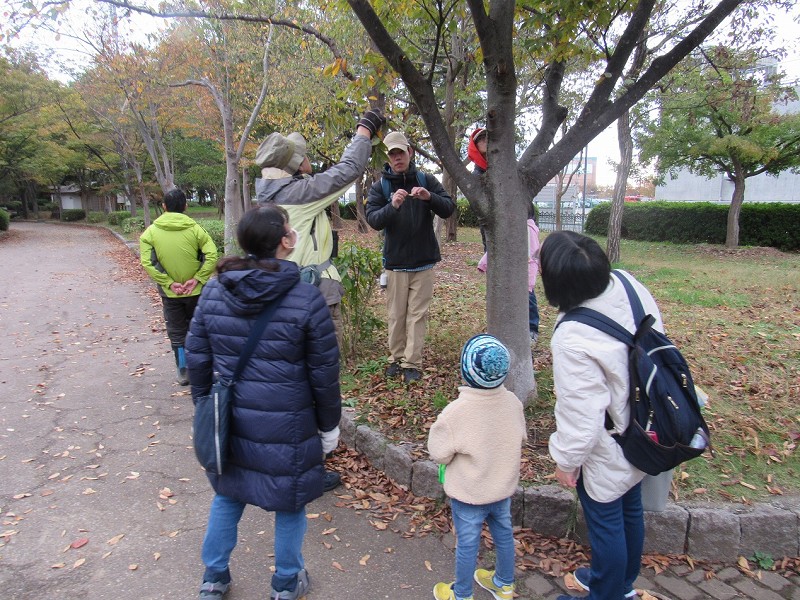 園内の移り変わり行く樹々の観察をしたり、昆虫や野鳥の様子を見に探し回りました。
