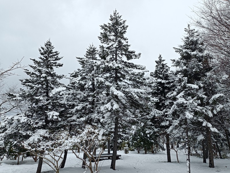園内の雪化粧した樹木を撮影したので、どれが一番きれいか