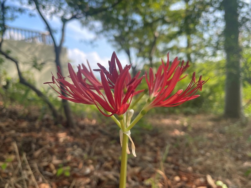 園内は秋の入り口にさしかかり、赤くなったマユミの実やあざやかなコムラサキそしてヒガンバナも咲いていました。季節の移り変わりの真っ只中といったところでしょうか(^^)