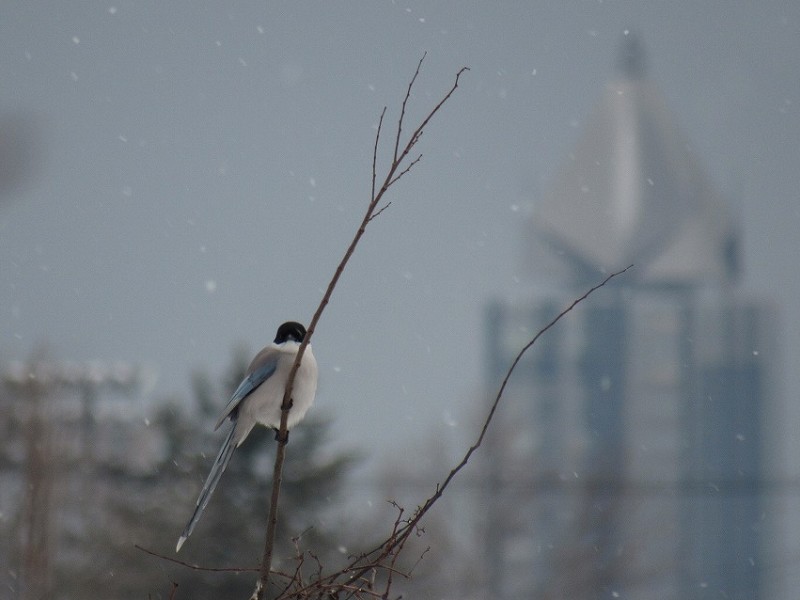 雪が良い演出してます。もふっとしたオナガ可愛いですね![]()