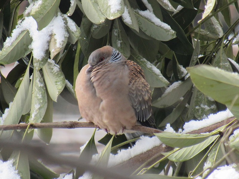 キジバトも寒くて、普段よりもふもふ具合が