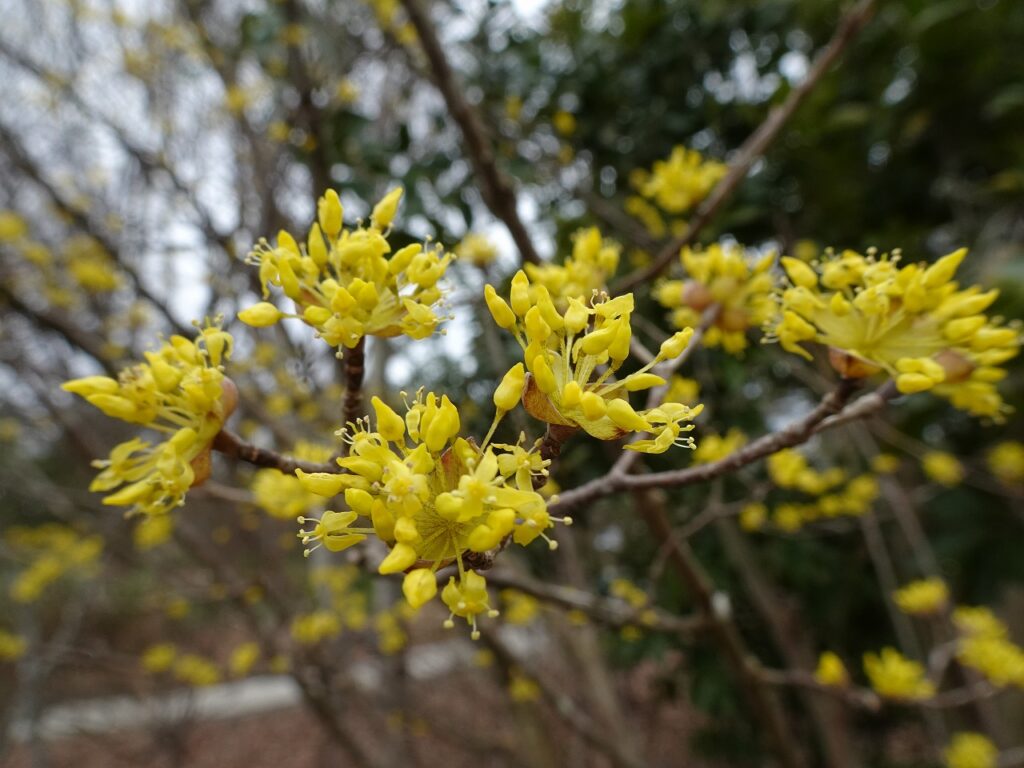 続くサンシュユの花も開花です。