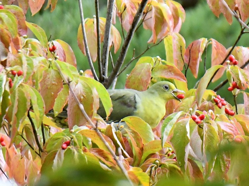えっ…目の前にアオバトとまったよ…シャッターチャンス📷