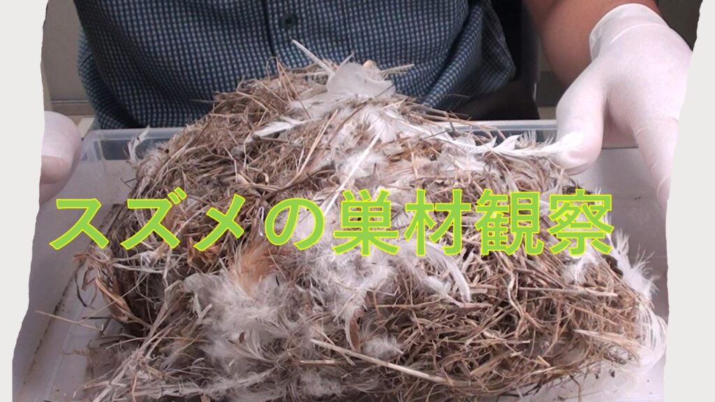 巣材は思いのほかボリューミーでイネ科やスギナ等の