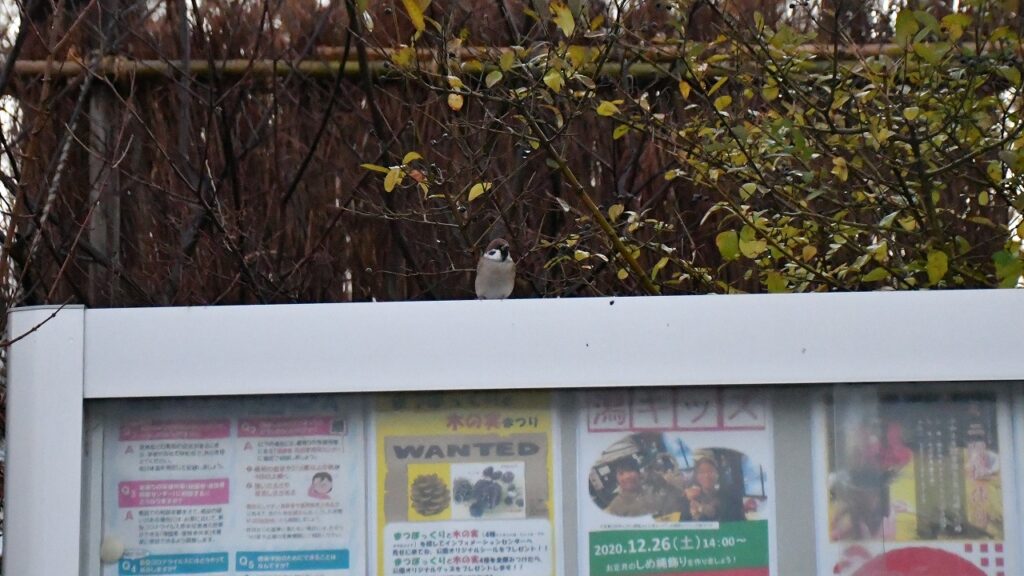 掲示板の上にスズメがちょこんといたのも可愛かったです。