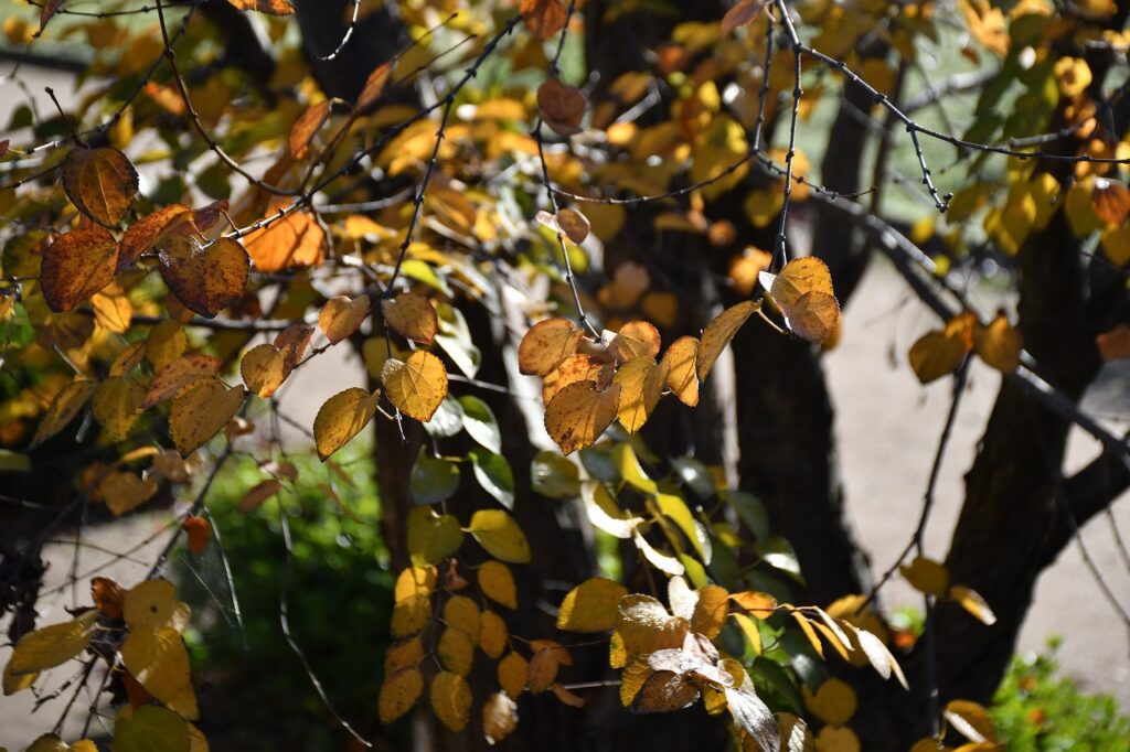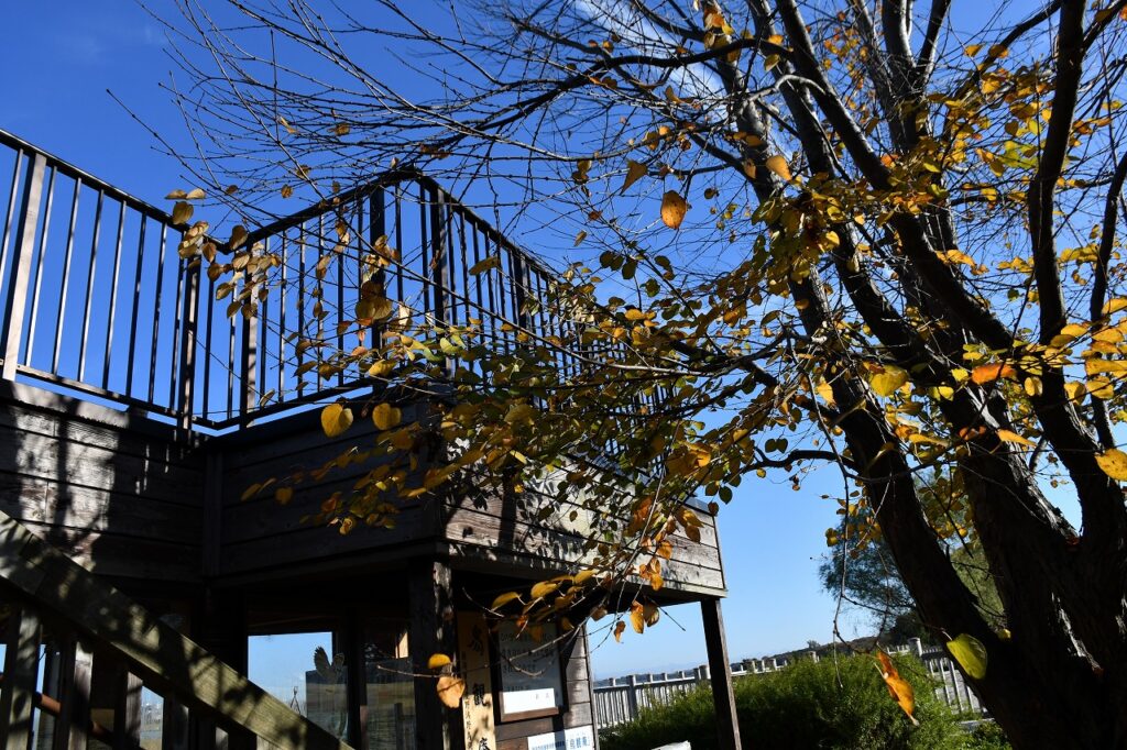 トリムの森にある鳥観庵前の「カツラ」の木の葉が