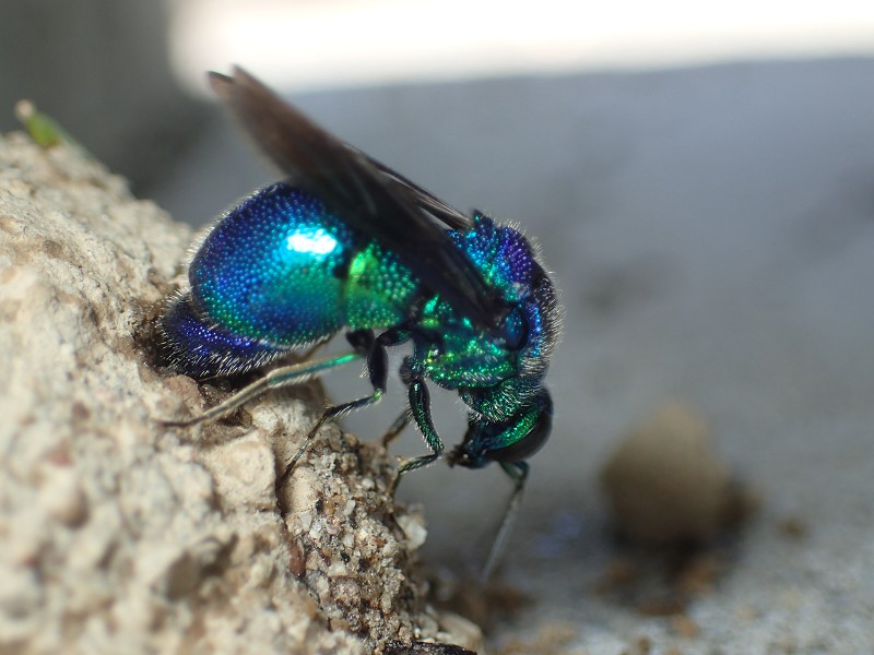 スズバチの観察をつづけていると青色のきれいな