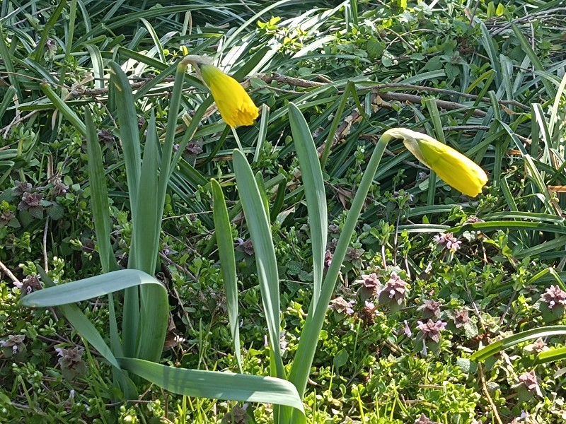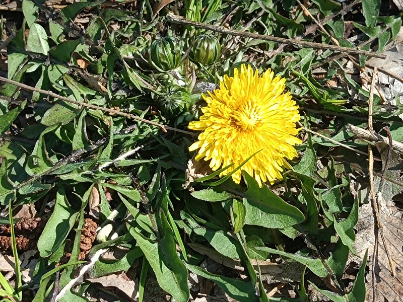 ユスリカの森には、ウグイスの声が響き、タンポポが咲き、スイセンもまもなく開花です。