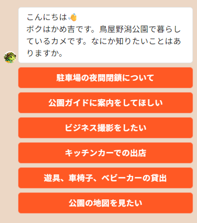 画面右下にはチャットボット”新かめ吉”を配置して、ご質問に回答するようしました。