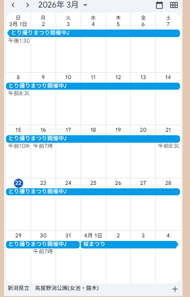 三連休の最終日は、鳥屋野潟公園にいらしてください。