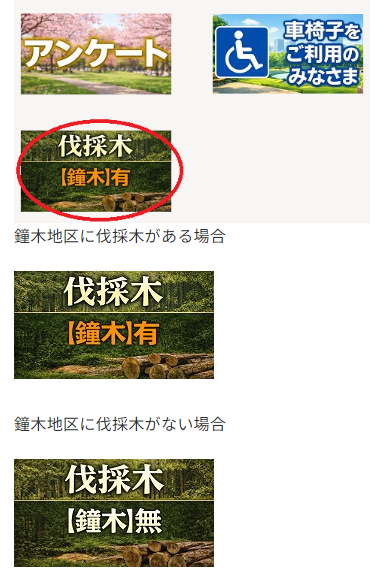 その下のバナー群には、伐採木の有無を一目でわかるようにしました。