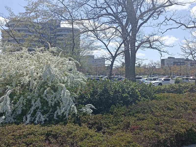 鐘木地区は、ユキヤナギも満開、駐車場も満杯です。