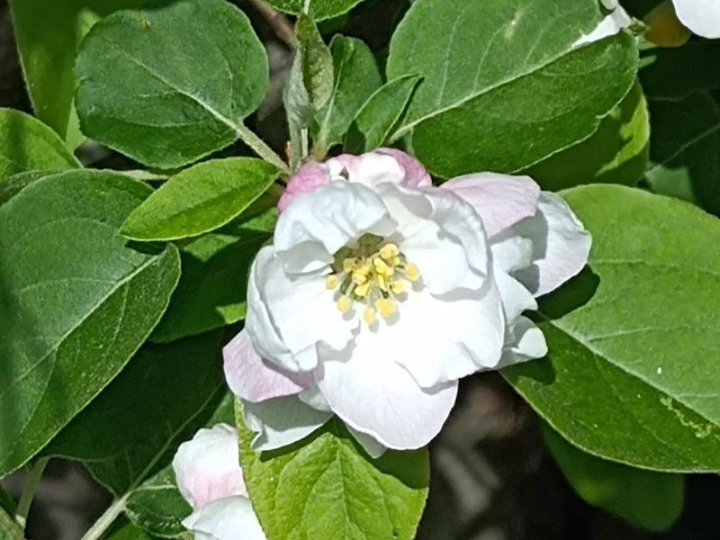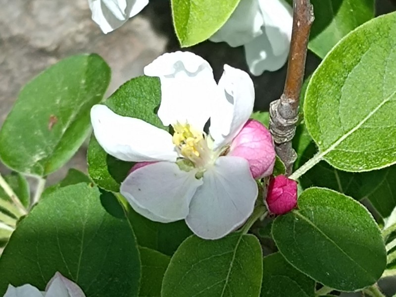 びっくりしたのは、多目的広場の中央のシンボルツリー 大ケヤキの幹の中からりんごの花がでてきていました。