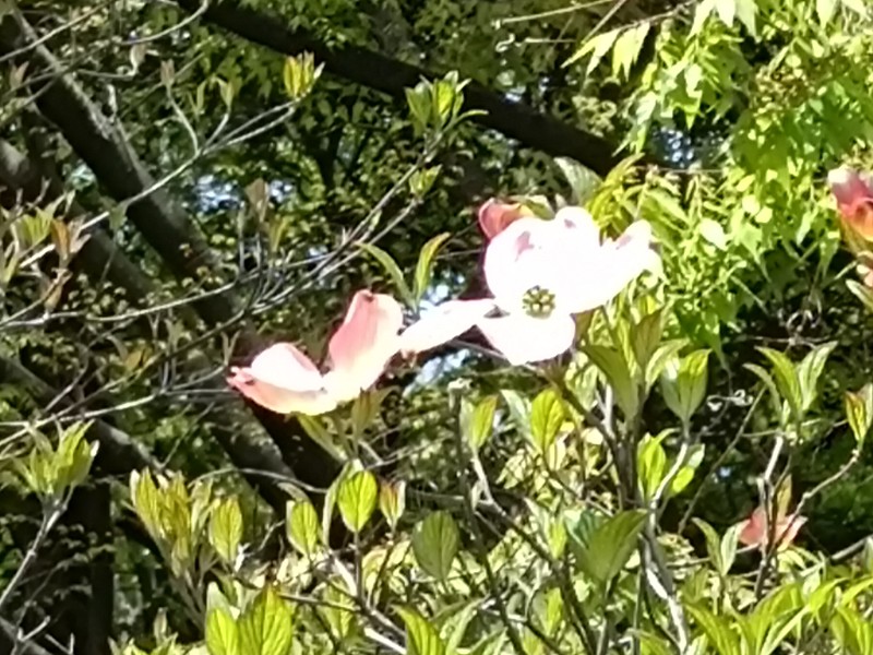 付近のトリムの森近くの園路では、なんとハナミズキが咲いていました。早すぎます。