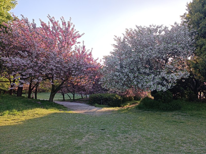 花見広場は、カンザンの花吹雪を味わうことができます。