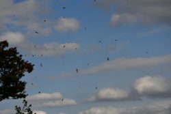 皆さん、こんにちは! 右の写真のように、もう、すっかり秋ですね~ 1枚目:マユミ、白と赤の実が可愛らしいです。 2枚目:イチョウです。また下の写真のように銀杏が 付いてました。 3枚目:トンボ、羽がきらきらして綺麗でした~。 でも、まだ夏の花サルスベリが少しだけ残ってます。 他にも秋空にムクドリが通過して綺麗でした。 葉っぱも風に乗ってきれいに飛んでました。 なぜだか、一回吹いてくれたんですよね。 担当:K