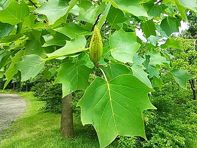 ユリノキの実は翼果(果皮の一部が羽のように発達しており、