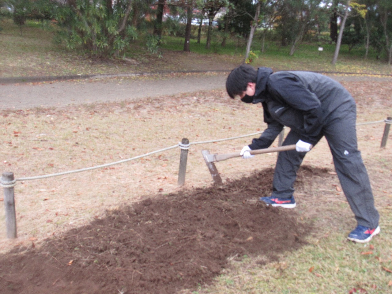 今日はまず、花壇を耕す作業を行いましたよ![]()