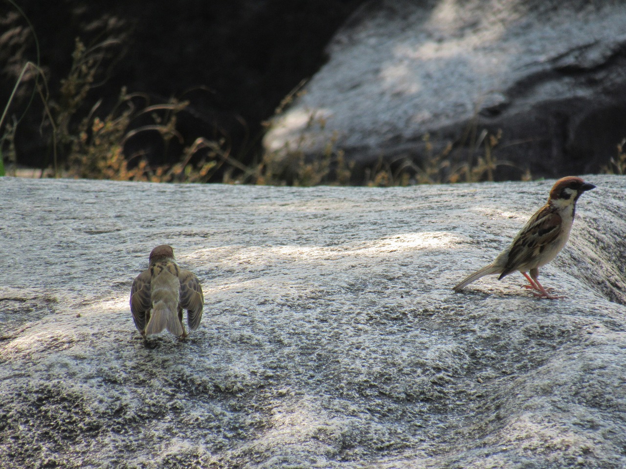 暑くて口を開けているハクセキレイやハシボソガラスです。