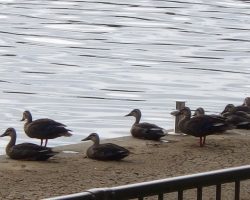 こんにちは! 夕方の巡視中によく見る風景。 カルガモが船着き場に集合しています。 みんな成長して、 どれが雛だったのかわからなくなりました さて、6月に開催した親子体験教室。 みなさんのお家では、順調ですか? 去年から引き続き育ててくださった方 (3枚目の写真) 梅雨の恵みで背が伸び、支柱を立ててます。 陽の光をたっぷり浴びさせ、 時々栄養を与えるといいそうです 花も美しいそうです、楽しみですね。 担当:si