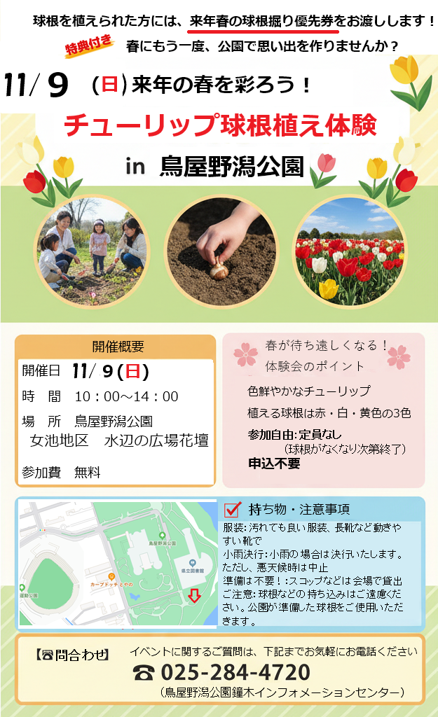 参加された方には来年春の球根掘りイベントの優待券を差し上げます。