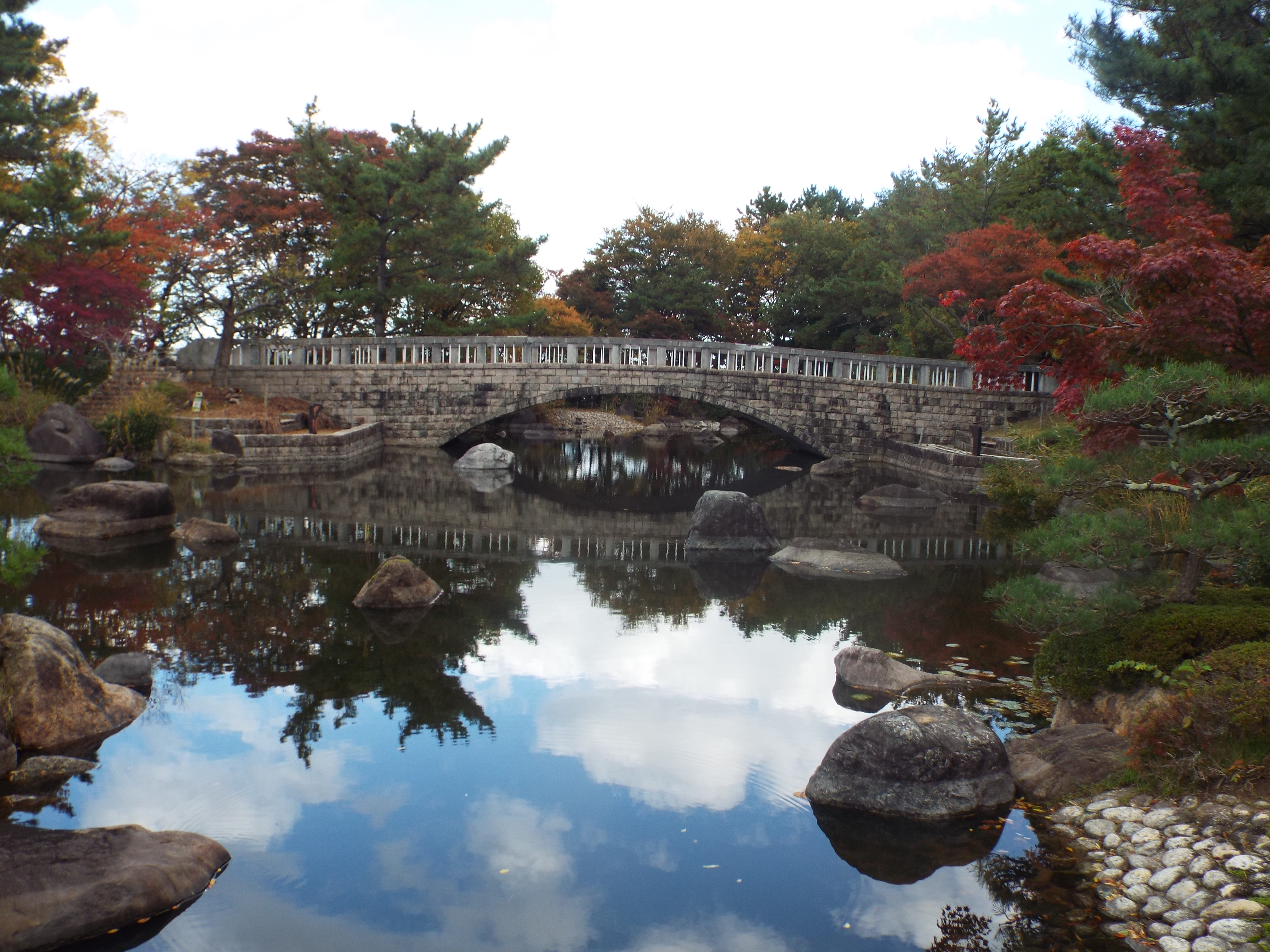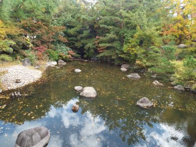 日本庭園付近では、紅葉や青空が、水面にうつり、とてもきれいです。