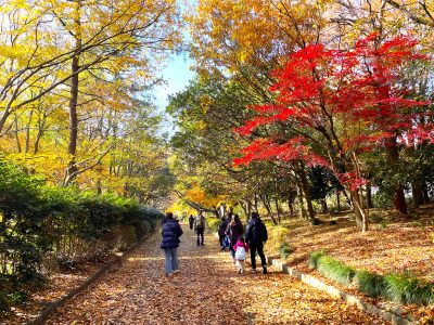 朱色に染まった園内で気持ちよく