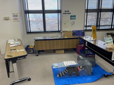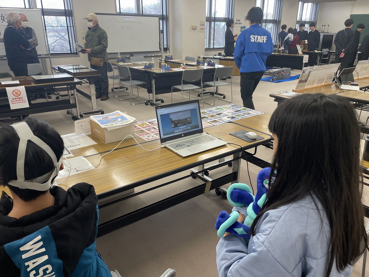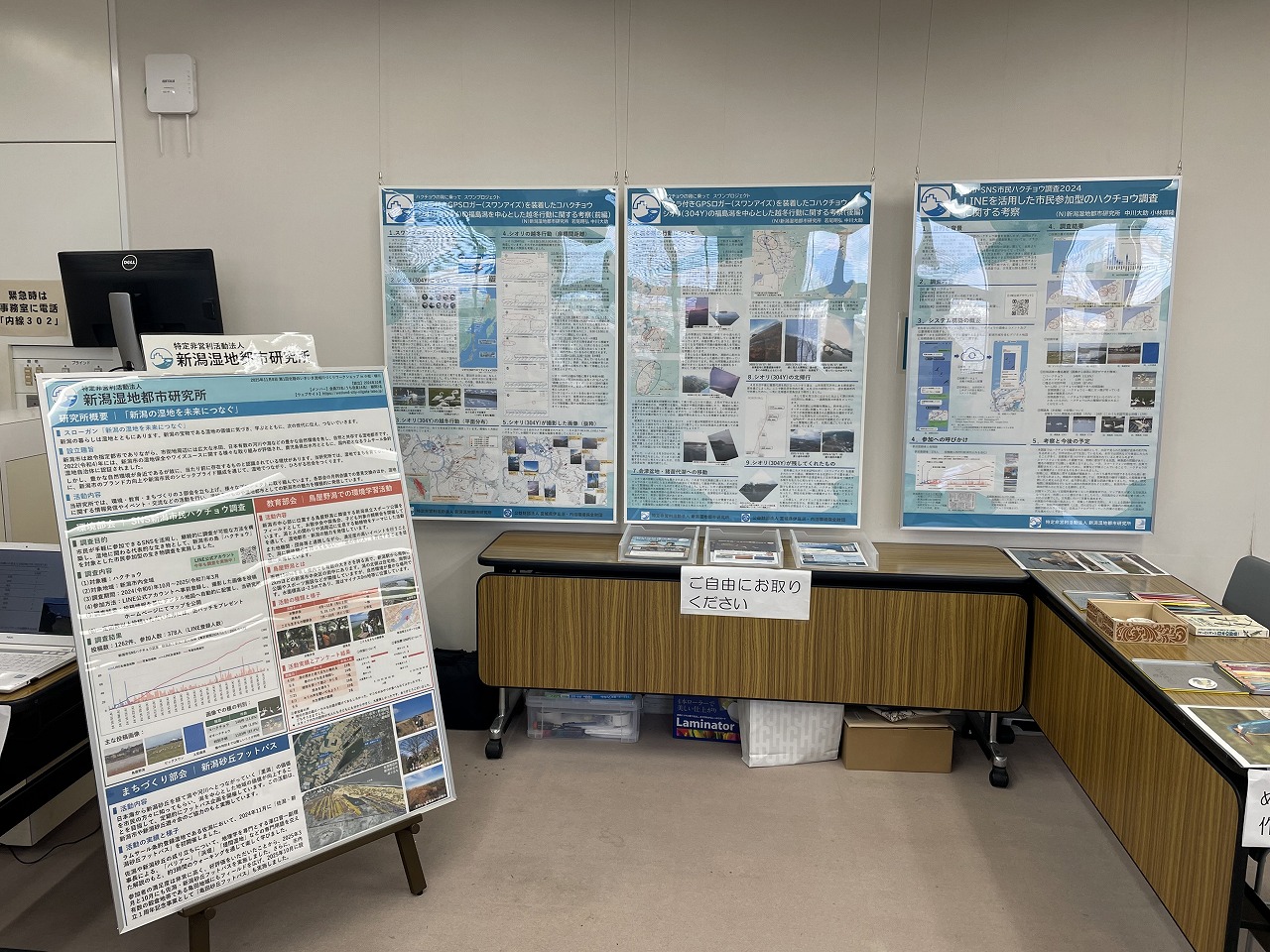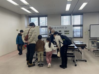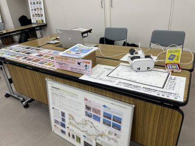 展示:活動紹介ポスター、ハクチョウ調査を動画で紹介