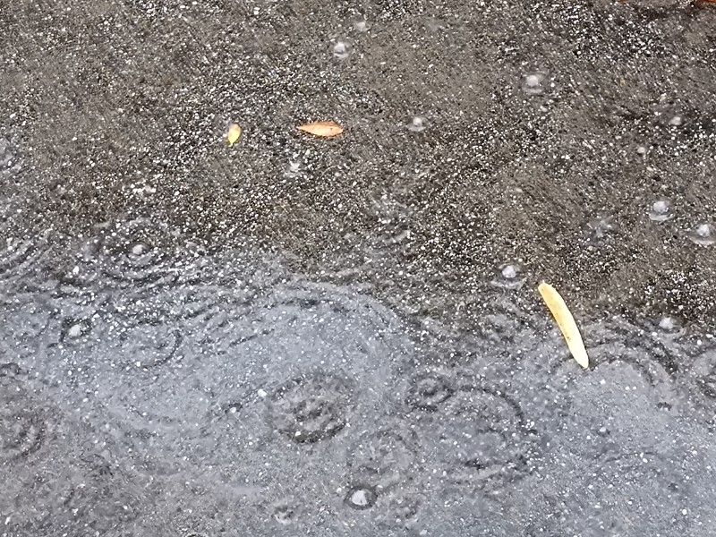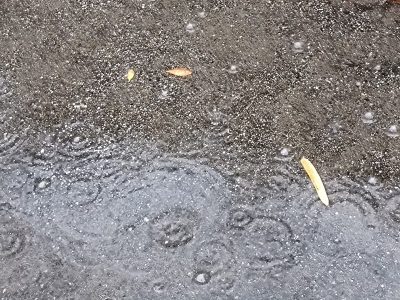 駐車場の水たまりには、見事な水紋がでています。