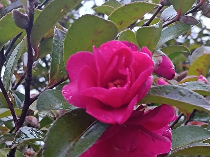 サザンカが咲き始めました。まもなく満開になりそうです。