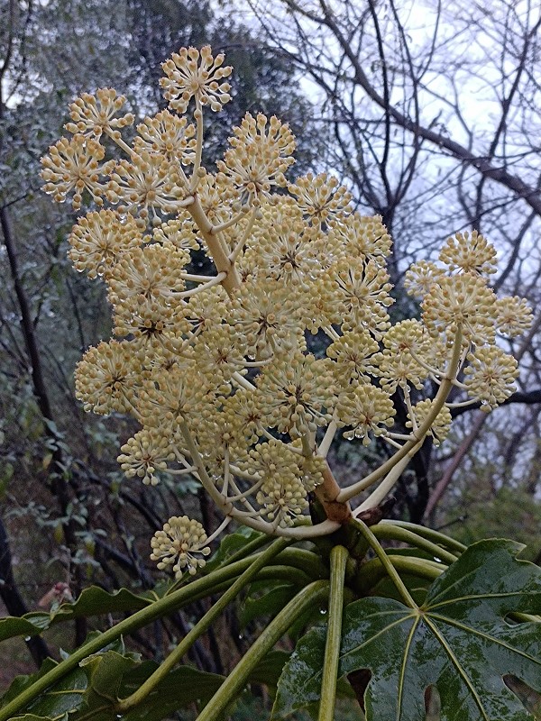 鳥屋野の路には、ヤツデの白い花が見頃です。
