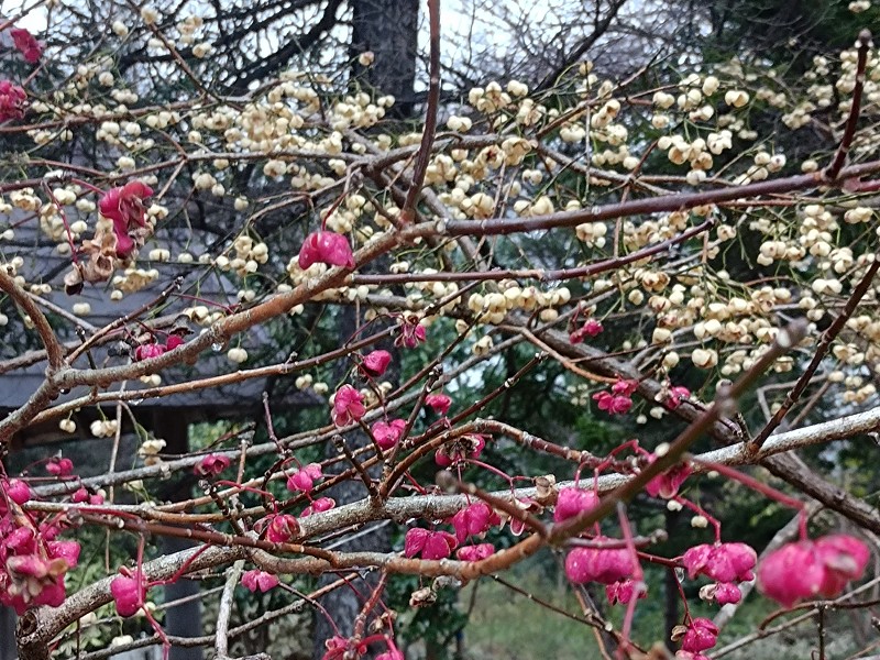 赤白のマユミの実がきれいです。
