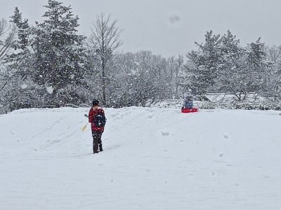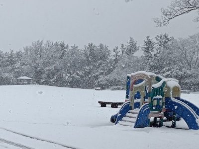 メイン広場の坂を使ってのソリ遊びが楽しそうです。