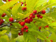 2016年09月11日 梅擬 今日は赤い実をつけて目立っている樹木をご紹介します 場所はしらべの小径から水辺の広場に差し掛かる手前くらいに あります! 今は写真のように小さい赤みがいっぱい付いているので…