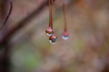 2020年12月02日 しずく 皆さん、こんにちは。 最近は雨マークがつくことが多くなりましたね☂ でも、雨のおかげで木々についた、しずくがとても きれいです。 シャンデリアみたいになっているものもあれば、 実のように…
